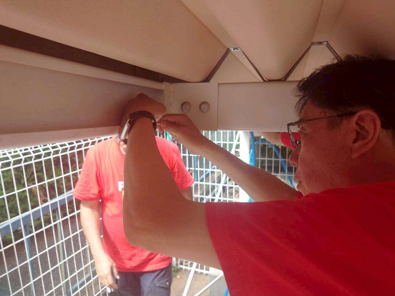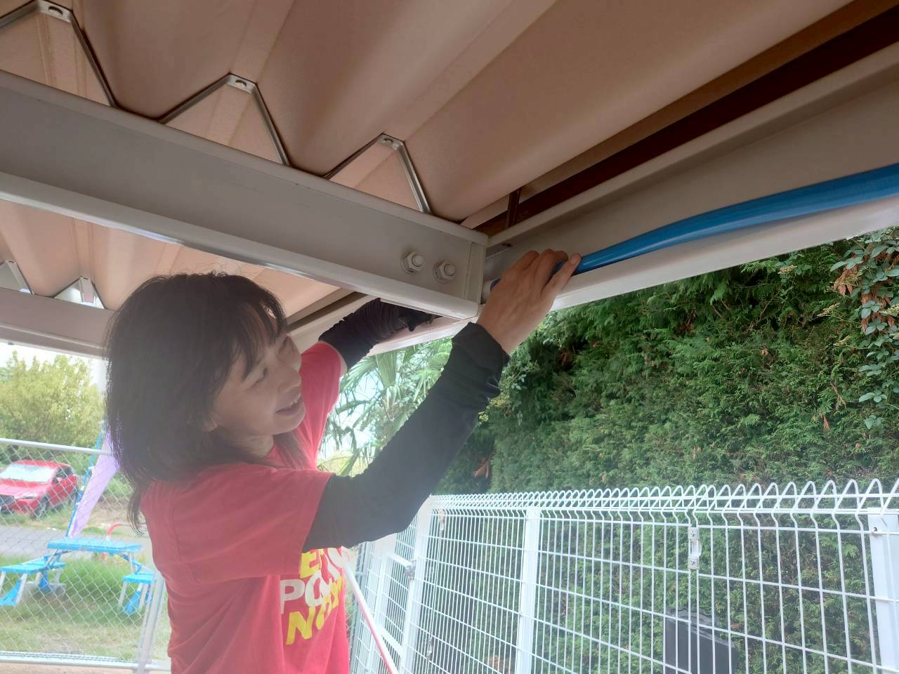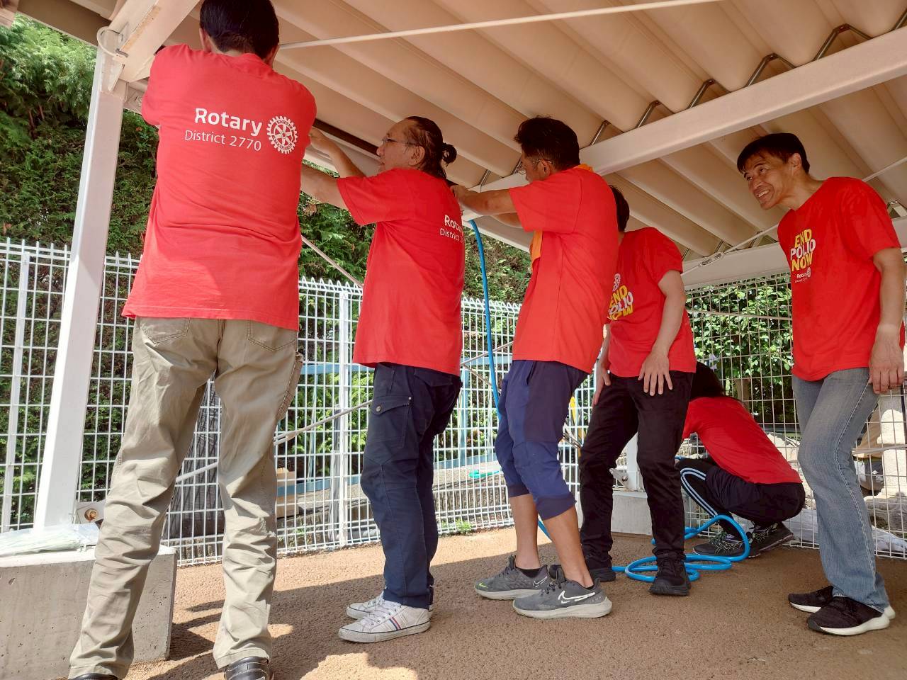 保護犬・保護猫の譲渡活動を行っている施設を支援するため、三沼店にてミストシャワーの設置作業を行いました。